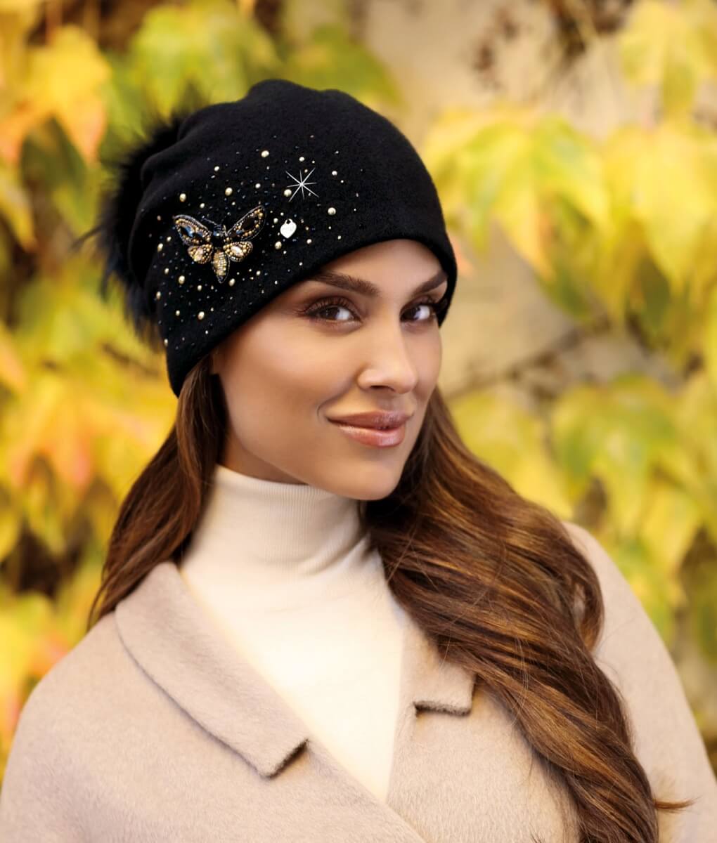 Caciula de dama cu pompon din blanita Atelana este o piesa vestimentara sofisticata, creata pentru a satisface nevoile celor mai exigente doamne. Impresioneaza nu doar prin designul modern si finisajele perfect executate, ci si prin calitatea materialelor utilizate, care asigura confort termic si durabilitate pe termen lung. Accesorizarea cu fluture brodat, cristale, mici strasuri si tinte decorative transforma caciula de dama cu pompon din blanita Atelana intr-un element de atractie si admiratie pentru toti cei care privesc.