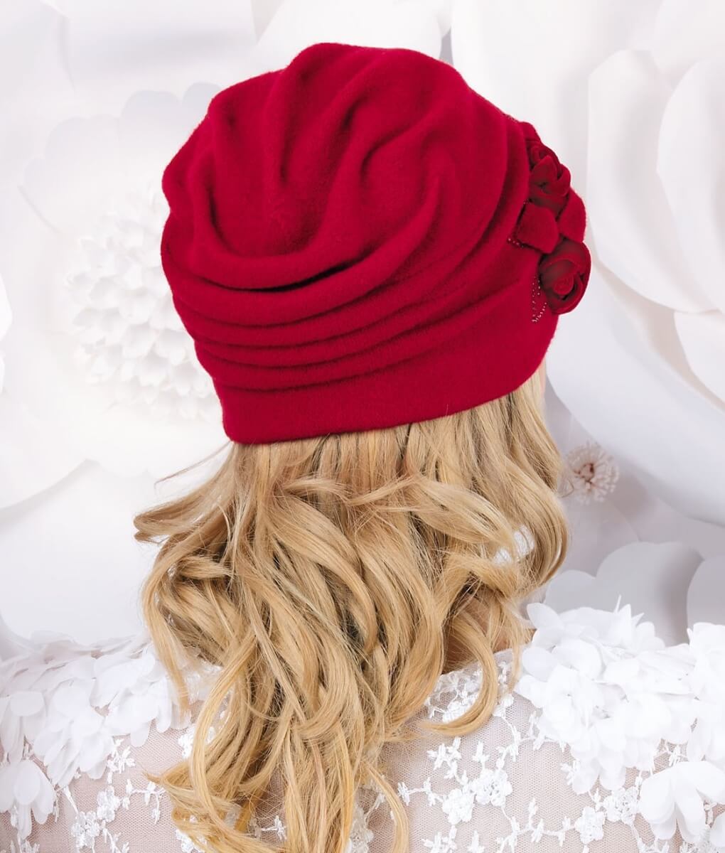 Se remarca prin detaliul care ii confera personalitate: ornamentul lateral sub forma unor trandafiri din catifea cu frunze din tricot. Aplicatia florala este o adevarata opera de arta, atragand privirile si captand atentia prin detaliile sale minutioase si complexe. Acestea sunt completate cu strasuri ce aduc un plus de stralucire si eleganta, facand din caciula de dama eleganta Alondra alegerea perfecta pentru femeile care doresc sa iasa in evidenta.
