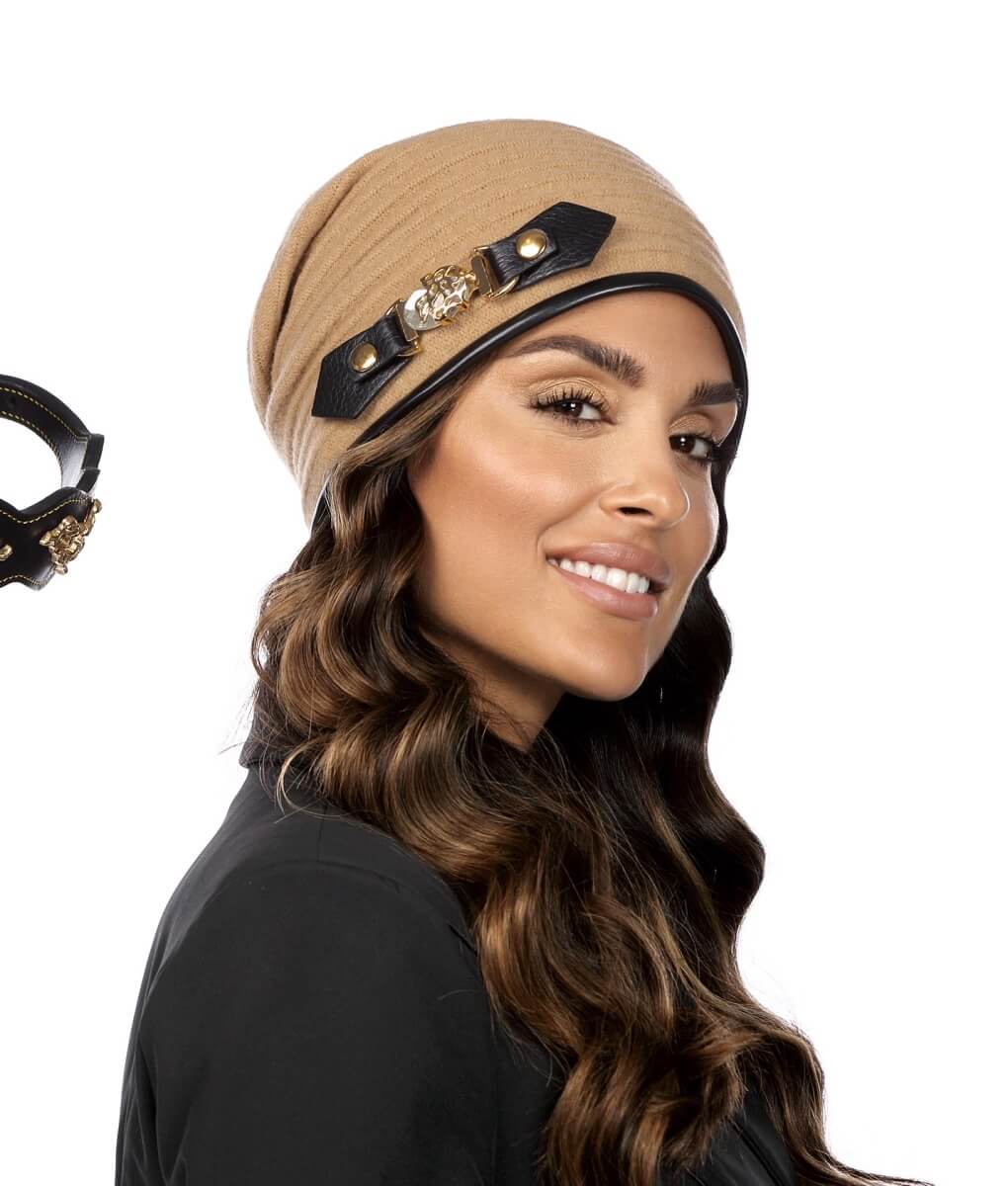 Designul pune accent pe marginea finisata cu piele ecologica, care nu doar adauga o nota de stil, dar ajuta si la evidentierea trasaturilor faciale ale purtatoarei. Catarama detasabila din partea dreapta faciliteaza procesul de curatare, asigurand o intretinere usoara si eficienta. Cusaturile decorative si pliul amplu prins spre spate aduc un aer modern. Un alt aspect important este captuseala cu polar (fleece), care asigura protectie termica si confort chiar si in zilele reci de iarna. Acest material calduros si moale garanteaza o izolare termica eficienta, pastrand capul purtatoarei cald pe tot parcursul zilei.