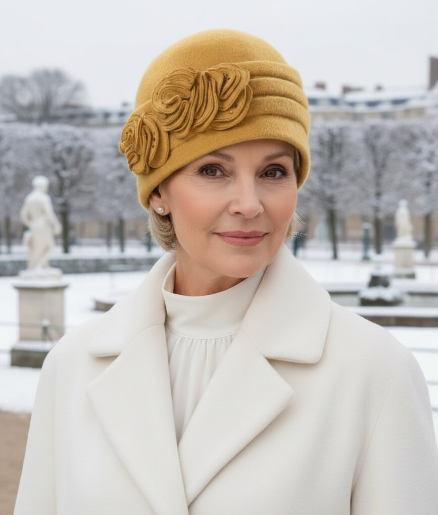 Nuanta galben mustar confera acestui model un caracter cald si expresiv, inspirat de tonurile naturale ale frunzelor tarzii si de lumina blanda a zilelor de iarna. Aceasta culoare adauga energie tinutelor si creeaza un contrast placut cu peisajele reci si monotone ale sezonului. Caciula de dama Sally 4 este ideala pentru a completa paltoane in culori neutre, precum gri, crem, maro sau negru, oferind un punct de interes vizual si un plus de personalitate. In diminetile reci, cand aerul este taios si cerul este acoperit de nori, contribuie la crearea unei tinute echilibrate si confortabile.