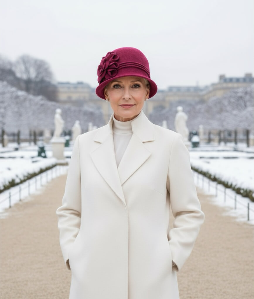 Forma modelului este atent echilibrata, astfel incat sa ofere atat stabilitate, cat si un aspect feminin. Borul mic reprezinta un detaliu definitoriu, deoarece incadreaza delicat trasaturile fetei si creeaza o linie clara care pune in valoare intreaga structura. Acest element adauga un plus de distinctie si diferentiaza caciula de dama stil palarie Doris 3 de modelele clasice, oferind o nota inspirata din eleganta modelelor traditionale. In acelasi timp, borul contribuie la o asezare sigura si confortabila, mentinand forma modelului chiar si dupa purtari repetate.