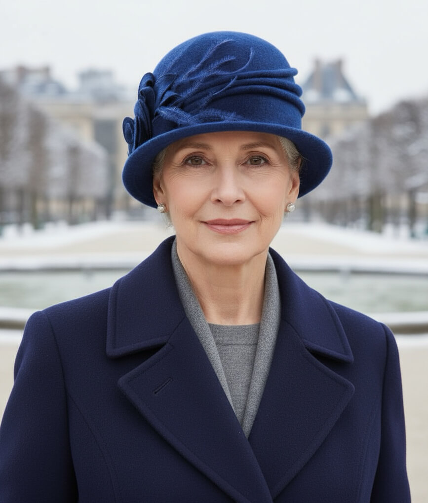 Cusaturile decorative dispuse circular pe calota adauga textura si evidentiaza calitatea executiei. Aceste linii subtile definesc suprafata si contribuie la mentinerea structurii, astfel incat modelul isi pastreaza forma in timp. Caciula de dama stil palarie Fabienne 2 ramane confortabila si isi mentine aspectul chiar si dupa purtari repetate.