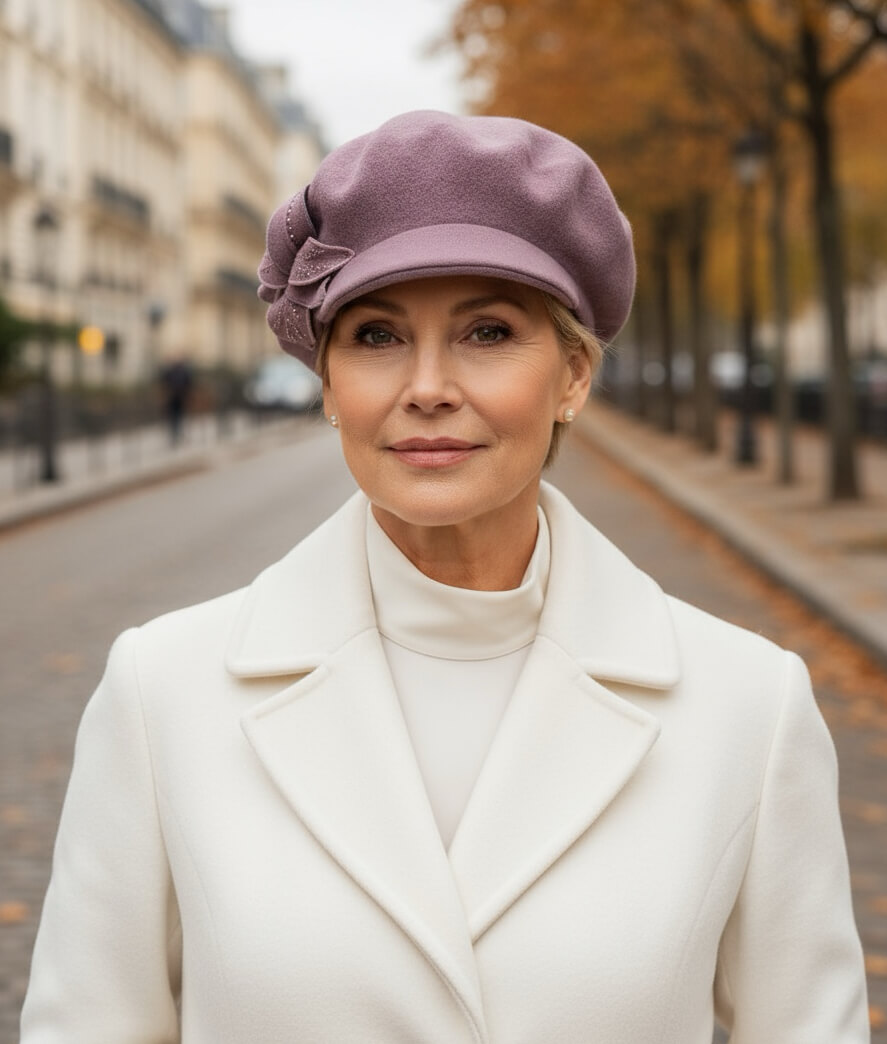 Culoarea violet prafuit confera modelului un aer delicat si sofisticat. Aceasta nuanta adauga personalitate tinutelor de iarna si se combina usor cu numeroase articole vestimentare. Pune in evidenta detaliile decorative si accentueaza caracterul feminin al modelului. Datorita designului sau echilibrat si a materialelor de calitate, caciula de dama tip bereta cu cozoroc Avrelas 8 poate fi integrata cu usurinta in numeroase stiluri vestimentare. Poate completa o tinuta casual pentru plimbarile prin oras, dar poate fi purtata la fel de bine si in combinatii mai elegante.