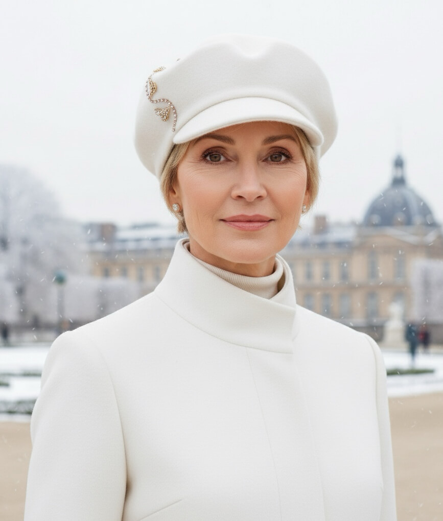 Albul ofera luminozitate si pune in valoare trasaturile fetei, creand un contrast elegant cu paltoane in nuante inchise sau cu piese in tonuri neutre. Caciula de dama tip bereta cu cozoroc Cyprasa in aceasta culoare devine un punct central al tinutei, fara a fi stridenta. Este o alegere inspirata pentru sezonul rece, mai ales in zilele cu zapada, cand nuanta alba completeaza armonios peisajul si aduce un plus de stil.