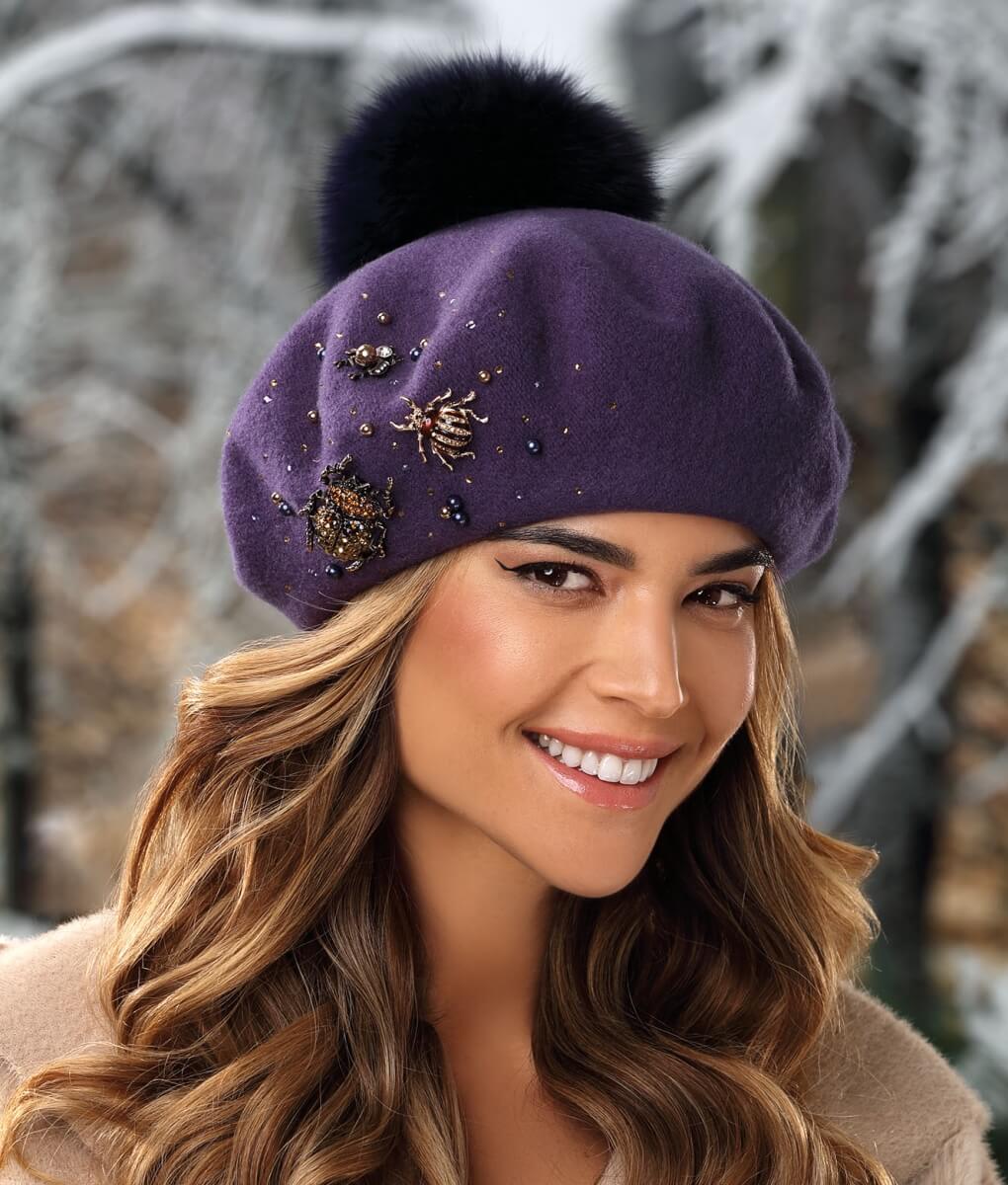 Pomponul detasabil, un element iconic pentru aceasta piesa, este confectionat din blanita naturala. Acesta nu doar adauga un plus de stil, dar faciliteaza si intretinerea. Detaliile fac intotdeauna diferenta. Brosele decorative in forma de insecte, margelele si strasurile stralucitoare care decoreaza lateralul, aduc o nota de excentricitate rafinata, transformand caciula de dama tip bereta cu pompon din blanita Akas 3 intr-un adevarat magnet pentru complimente. Fiecare brosa, fiecare margea, fiecare stras adauga o scanteie, o pata de culoare, o nota de unicitate.