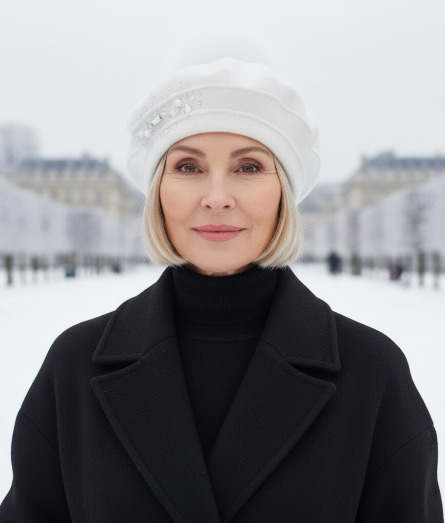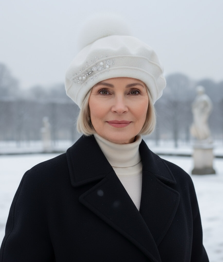 Culoarea alba ofera multiple posibilitati de asortare si evidentiaza fiecare detaliu al modelului. Poate completa tinute in tonuri neutre sau poate crea contraste elegante cu piese inchise la culoare. Caciula de dama tip bereta cu pompon din blanita Florydas aduce luminozitate si echilibru vizual, fiind potrivita pentru femeile care prefera accesorii cu prezenta discreta, dar bine definita.