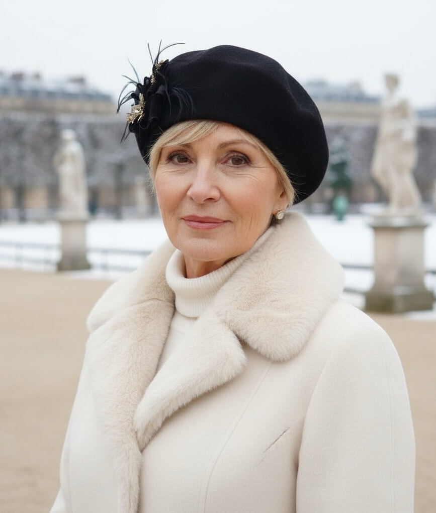 Caciula de dama tip bereta eleganta Utiv este un accesoriu vestimentar chic care aduce un suflu de moda frantuzeasca in garderoba oricarei femei. Cu un croi clasic, accesorizare rafinata si design cochet, reprezinta alegerea perfecta pentru a completa tinutele elegante si sofisticate. In lateral, cucereste prin decorul cu pene, fundite stilizate, brose sub forma de frunze si broderie, conferind o nota de rafinament si stil aparte.