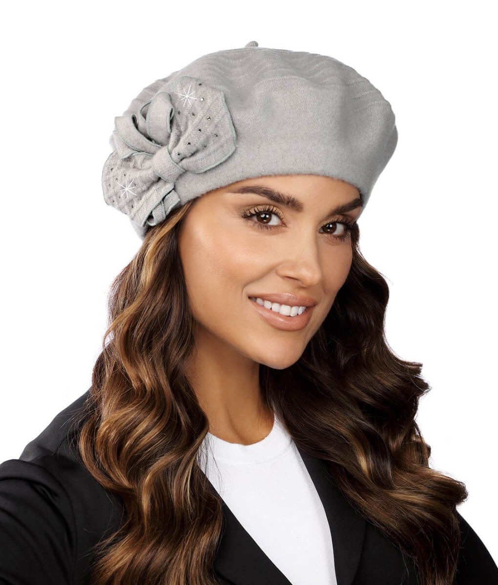 Caciula de dama tip bereta Welunis are design cochet si accesorizarea sofisticata. Micile cusaturi decorative adauga un plus de stil si unicitate, atragand priviri admirative din partea celor din jur. In lateral, o fundita stilizata confera un aer romantic si feminin, fiind completata cu mici strasuri asortate care stralucesc in razele de lumina si aduc un aer elegant. Aceasta combinatie de elemente o face sa fie nu doar o piesa vestimentara utila, ci si un accesoriu de moda ce completeaza perfect tinutele casual. Forma tip bereta se potriveste perfect pe cap, asigurand o stare de bine in timpul purtarii si protectie impotriva frigului si vantului.